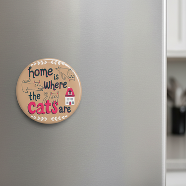The Purr-fect Statement Piece Transform your fridge or office space into a tribute to your favorite roommates. This charming 2.25" round magnet features playful cat illustrations and a cozy "Home Is Where the Cats Are" sentiment that every cat parent knows to be true.
