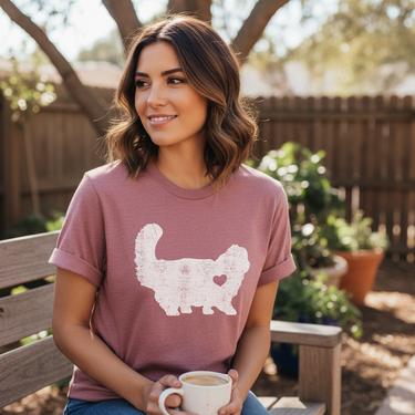 Introducing the Fluffy Cat T-Shirt, the crown jewel of our Purrs And Whiskers collection. This isn't just a shirt; it’s a lifestyle statement for the cat-obsessed. Featuring a stunning, distressed white silhouette of a gloriously floofy feline with a tiny heart placed exactly where your kitty has stolen yours, this shirt screams "I have cat hair on my furniture and I'm okay with it."