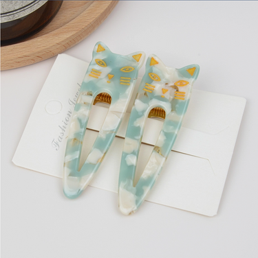 Your favorite hair clips take a step up on the style scale with these adorable cat hair clips! Sold in a set of 2, these cat hair clips come in 5 different patterns and complement beautifully any hair style. They have a no damage finish and come in neutral colors for the ultimate in versatility. Clip on one or two or mix and match colors - there's no limit to their staying or style power! Light and comfortable, they are a subtle nod to your fur-ever friend. Great for taming your hair and complementing your purr-sonal style!