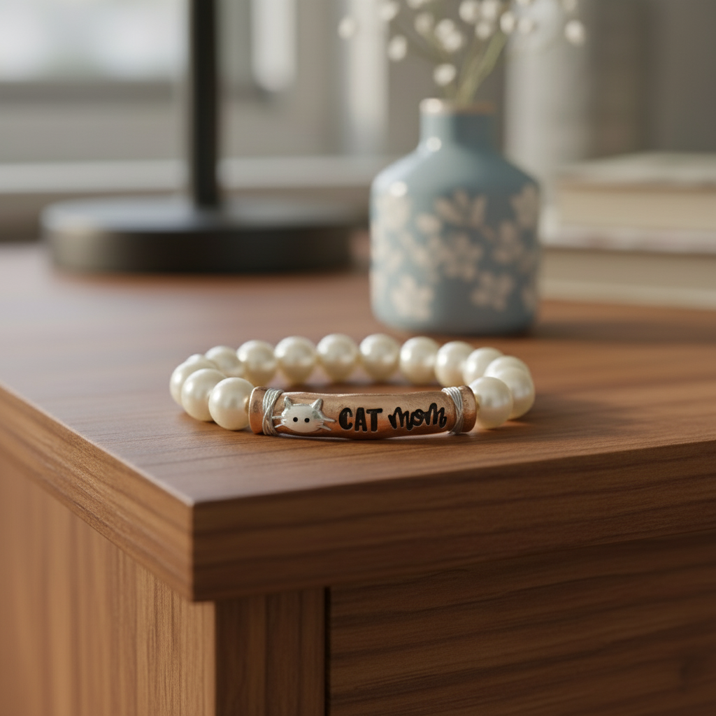 Elevate your everyday style with our Cat Mom Pearl Bracelet, a charming blend of elegance and pet-lover pride. Designed with glossy faux-pearl beads and a stretchable fit, this bracelet wears comfortably all day while adding a soft, sophisticated touch to any outfit.