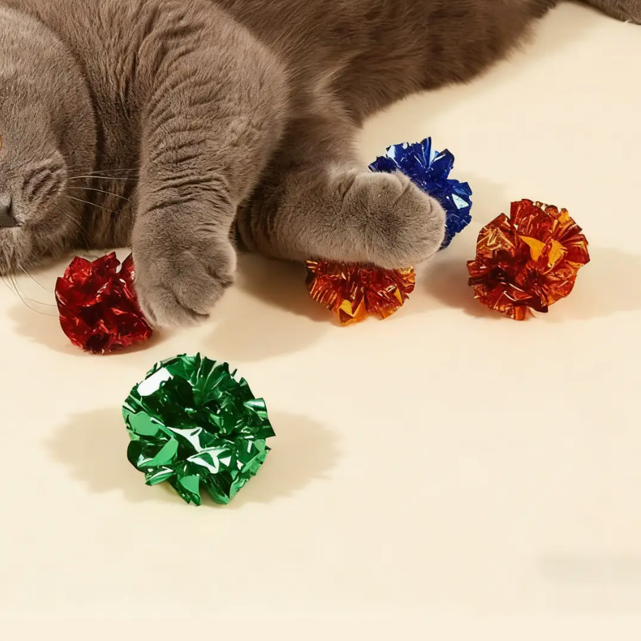 Watch your feline friend go wild for our Cat Crinkle Ball Toys! These lightweight, shiny balls are designed to tap into your cat’s natural hunting instincts. With every bat, pounce, and toss, these balls produce an irresistible crinkling sound that keeps your cat engaged and entertained for hours.