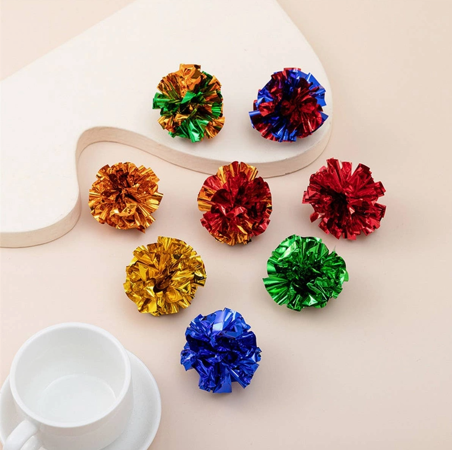 Crafted in vibrant, assorted metallic colors, these toys are easy for your cat to spot and even easier to carry around the house. Measuring between 2" and 2.4", they are the perfect size for cats of all ages to fetch and chase. Give your kitty the high-energy fun they crave with a toy that’s as flashy as it is noisy!