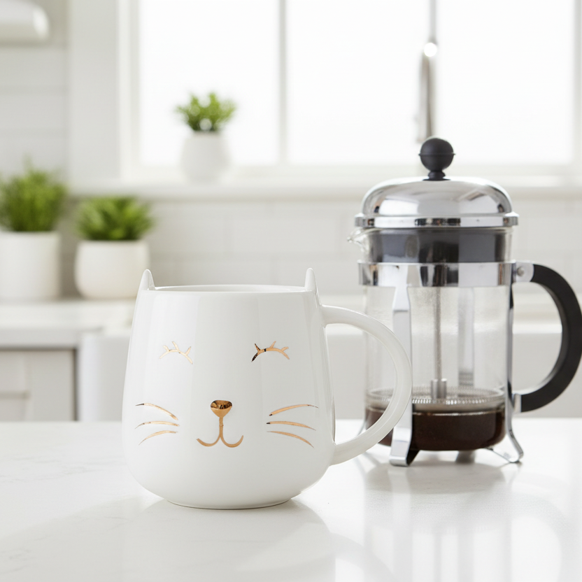 Perfect as a gift or for treating yourself, this Cat Face Mug combines playful design with functionality, making it the ideal companion for cat lovers and cozy drink enthusiasts alike. Add a dash of feline charm to your collection with this adorable, gold-accented mug!