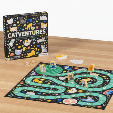 Get ready for some whiskered fun with the Catventures Board Game! This purr-fectly entertaining game is all about the adventurous lives of our favorite feline friends. Can you and your friends name six things cats like to eat, or walk around on your toes like a cat stalking its prey? This a-meow-zing game will test your knowledge and your agility as you move your character across the board.