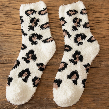 Fuzzy Padded Leopard Print Socks
