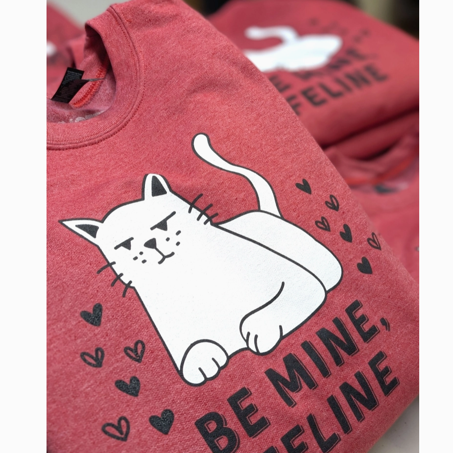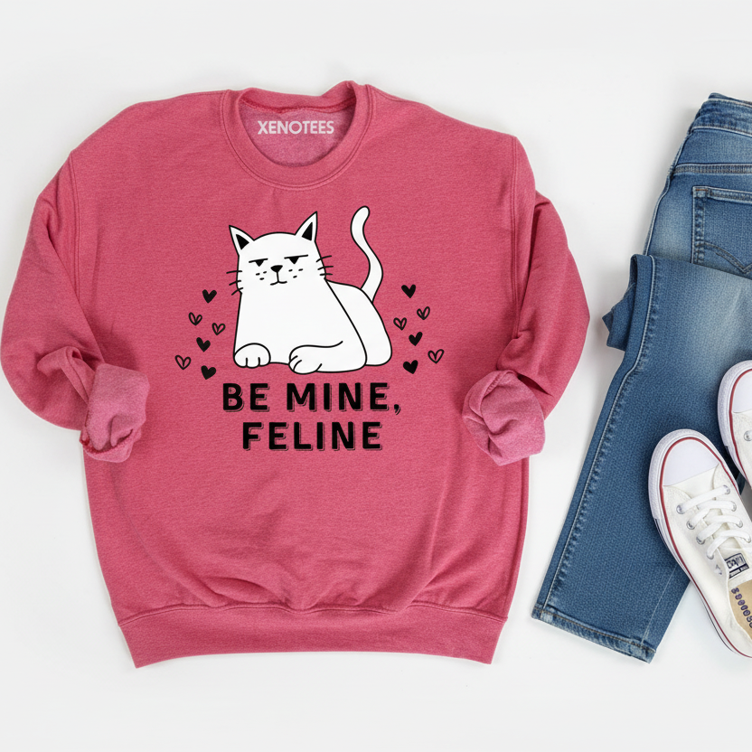 Bold Graphic: High-quality screen printing ensures the "Be Mine, Feline" design stays crisp and clear after every wash.