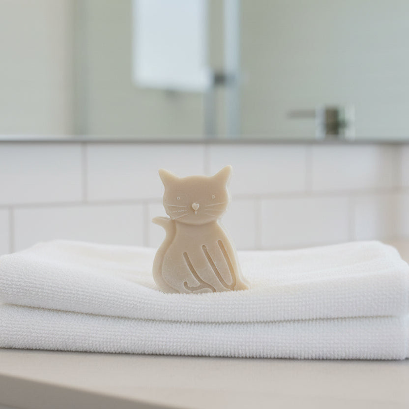 Treat yourself to the purr-fect SPA-like experience with this handmade cat shaped hand soap! Available in oatmeal, milk and honey, sweet citrus, peppermint, light floral and lavander & cedar, this soothing cat shaped bath soap will turn your bathroom into a luxurious oasis. It also makes a funny cat themed gift or stocking stuffer for a cat lover and is suitable for any occasion - from birthdays and holidays to sweet surprises and housewarming gifts. Pick one or mix and match the unique scents and add unique purr-sonality to your everyday essentials!
