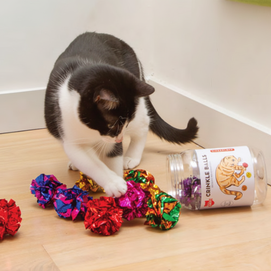 Irresistible Play: High-crunch sound and shiny texture keep cats engaged for hours.