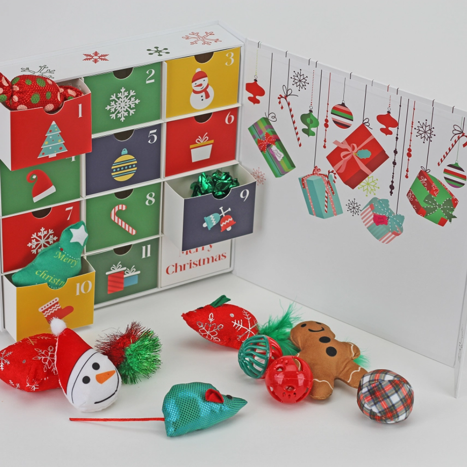 This pre-filled box includes 12 surprise cat toys, one for each of the final 12 days leading up to Christmas. From jingling balls to plush mice and festive shapes, every drawer holds a new surprise that will keep your kitty curious, playful, and filled with holiday cheer.