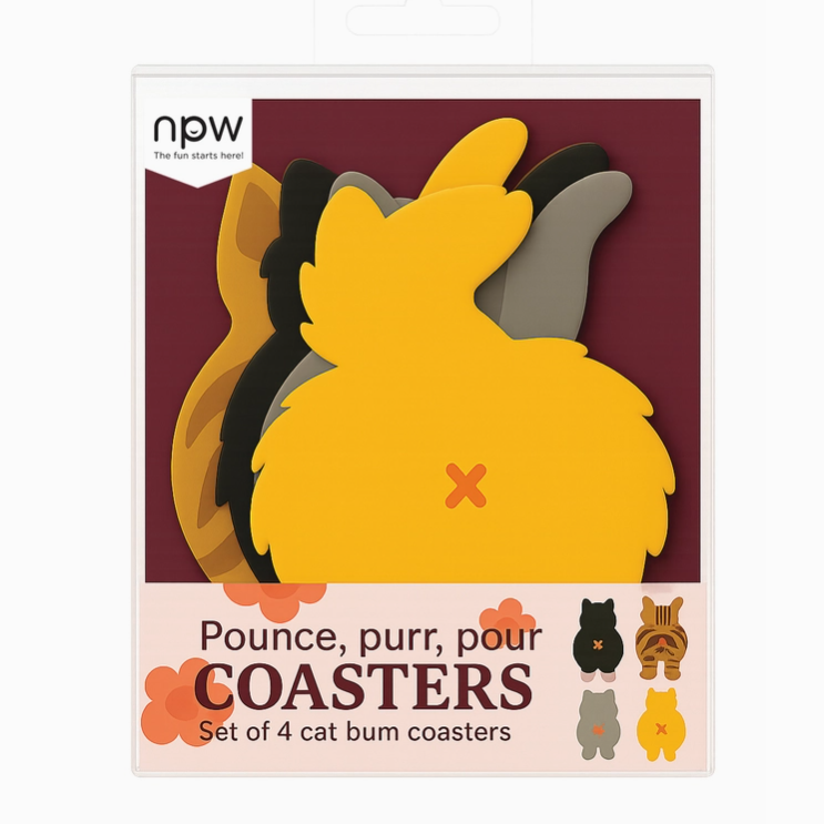 Add a touch of cheeky charm to your coffee table with our Cat Bum Coasters! This hilarious set of four features the unmistakable (and often unavoidable) view every cat owner knows by heart. It’s the perfect conversation starter for your next happy hour or morning coffee.