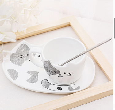 The Cat Ceramic Mug and Saucer Set is the purrfect way to add a little feline charm to your daily routine. Each set includes a cat-shaped mug, matching saucer, and a sleek spoon — ideal for sipping coffee, tea, or hot cocoa in cozy cat-lover style.