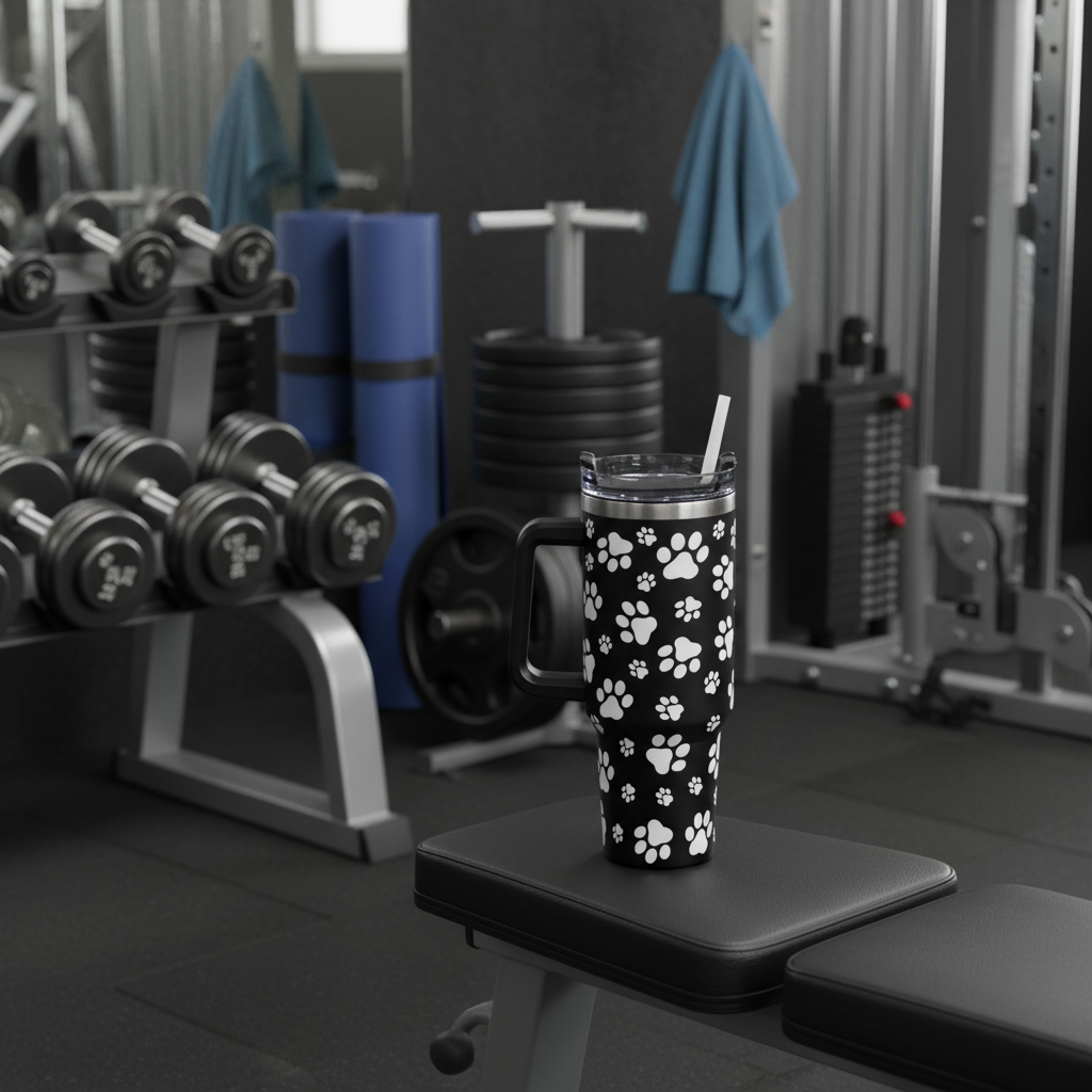 Paw Print 40oz Stainless Steel Insulated Tumbler with Handle